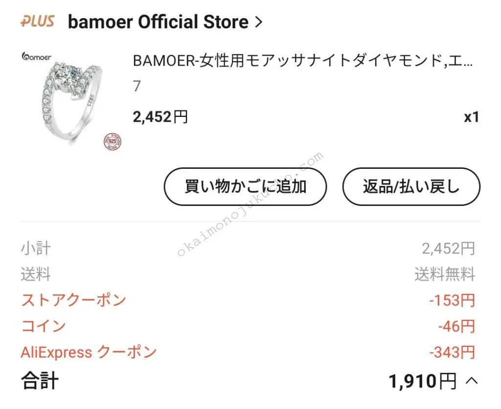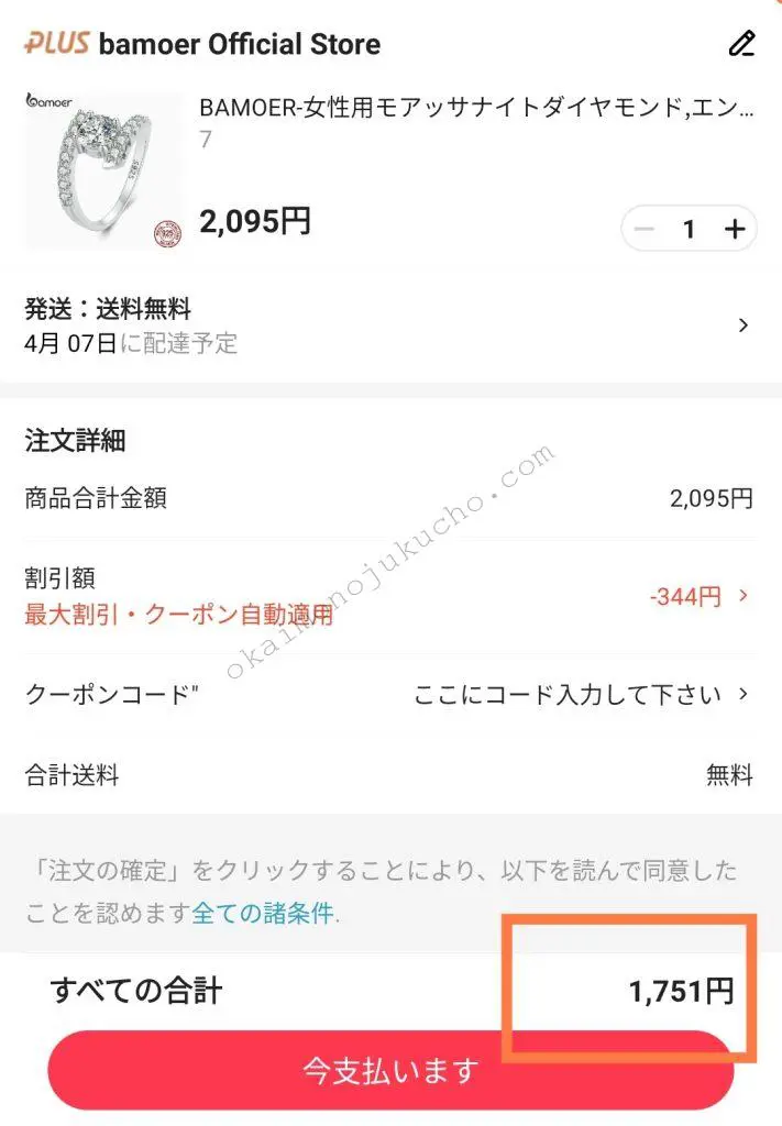 「AliExpressクーポン(コード)」と「プロモコード」は併用不可。